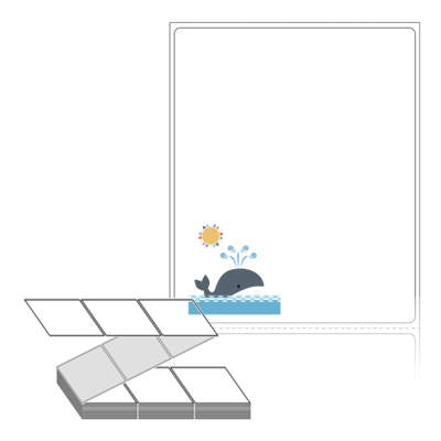 롤라벨보다 편리한 제트라벨, 규격코드: ZL8098, 디자인코드: DX172(고래의 하루), 80 x 98 (mm)