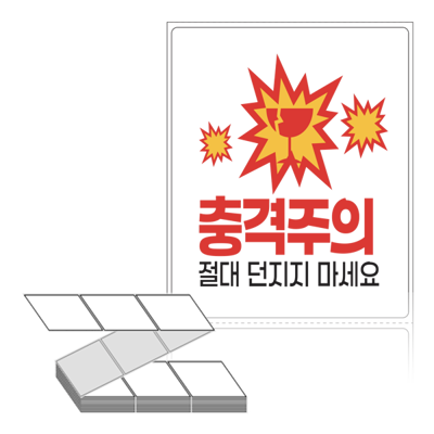 롤라벨보다 편리한 제트라벨, 규격코드: ZL8098, 디자인코드: FA130(충격주의 절대 던지지 마세요), 80 x 98 (mm)