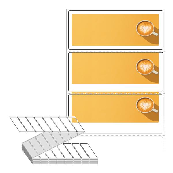 텍스트, 이미지, 도형, 바코드 등을 쉽게 출력 할 수 있으며 엑셀파일 등의 연동도 가능합니다. 라벨 모양대로 이미 칼선이 있기 때문에 출력 후 바로 떼어서 사용 하시면 됩니다.