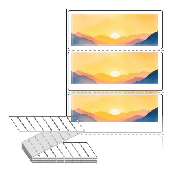 텍스트, 이미지, 도형, 바코드 등을 쉽게 출력 할 수 있으며 엑셀파일 등의 연동도 가능합니다. 라벨 모양대로 이미 칼선이 있기 때문에 출력 후 바로 떼어서 사용 하시면 됩니다.