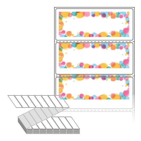 텍스트, 이미지, 도형, 바코드 등을 쉽게 출력 할 수 있으며 엑셀파일 등의 연동도 가능합니다. 라벨 모양대로 이미 칼선이 있기 때문에 출력 후 바로 떼어서 사용 하시면 됩니다.
