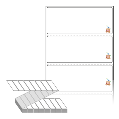 텍스트, 이미지, 도형, 바코드 등을 쉽게 출력 할 수 있으며 엑셀파일 등의 연동도 가능합니다. 라벨 모양대로 이미 칼선이 있기 때문에 출력 후 바로 떼어서 사용 하시면 됩니다.