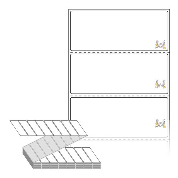 텍스트, 이미지, 도형, 바코드 등을 쉽게 출력 할 수 있으며 엑셀파일 등의 연동도 가능합니다. 라벨 모양대로 이미 칼선이 있기 때문에 출력 후 바로 떼어서 사용 하시면 됩니다.