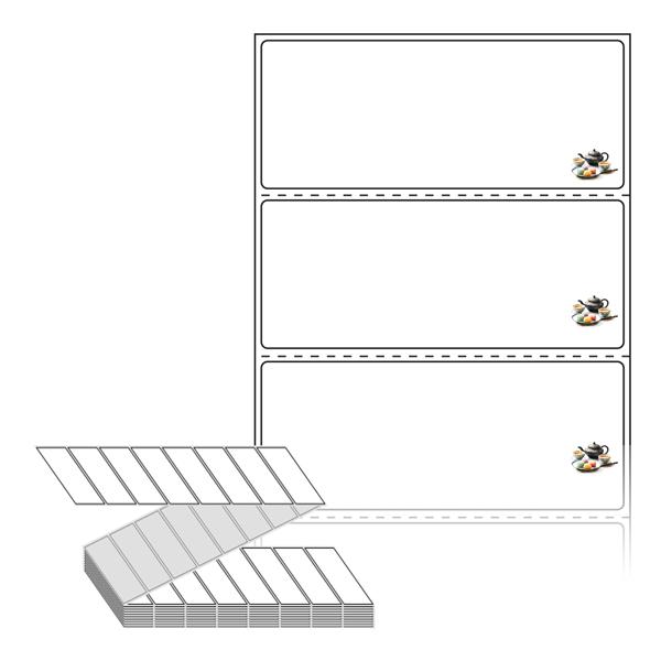 텍스트, 이미지, 도형, 바코드 등을 쉽게 출력 할 수 있으며 엑셀파일 등의 연동도 가능합니다. 라벨 모양대로 이미 칼선이 있기 때문에 출력 후 바로 떼어서 사용 하시면 됩니다.