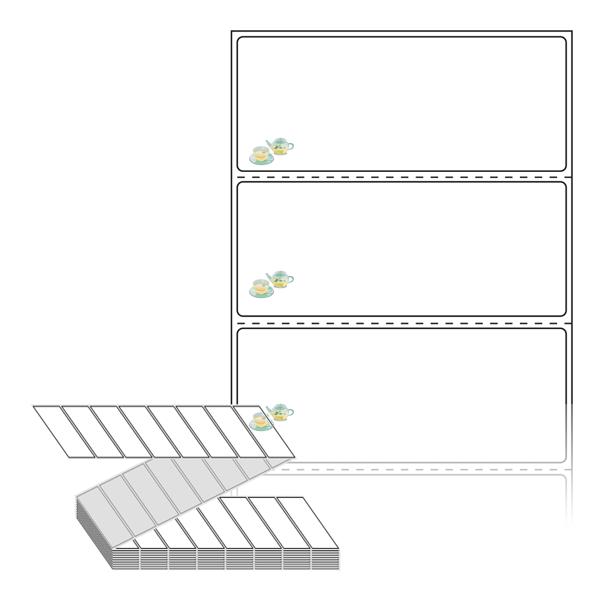 텍스트, 이미지, 도형, 바코드 등을 쉽게 출력 할 수 있으며 엑셀파일 등의 연동도 가능합니다. 라벨 모양대로 이미 칼선이 있기 때문에 출력 후 바로 떼어서 사용 하시면 됩니다.