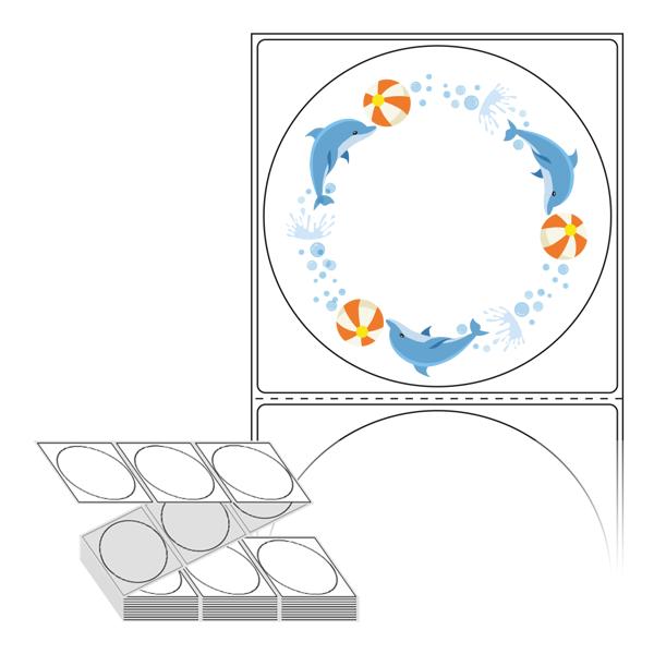 롤라벨보다 편리한 제트라벨, 규격코드: ZL8787, 디자인코드: DA015(돌고래 점프!!), Φ87 (mm) 원형