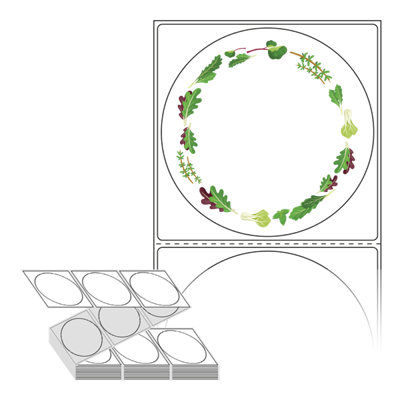 롤라벨보다 편리한 제트라벨, 규격코드: ZL8787, 디자인코드: DA049(건강한 야채 프레임), Φ87 (mm) 원형