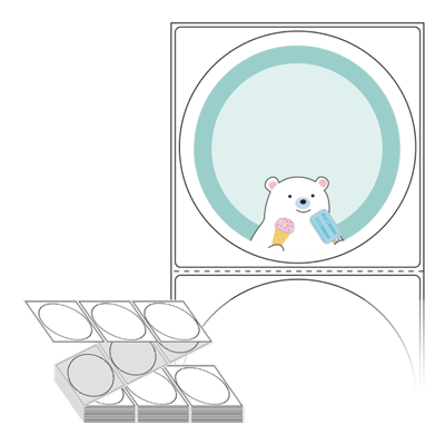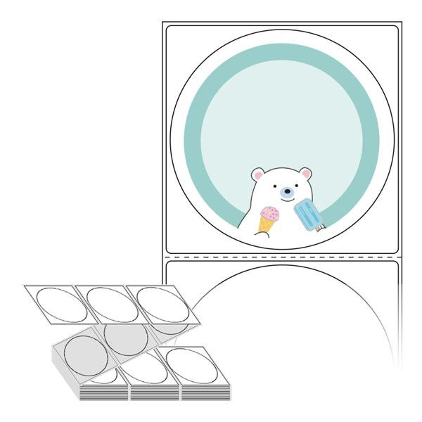 롤라벨보다 편리한 제트라벨, 규격코드: ZL8787, 디자인코드: DA1004(아이스크림이 좋은 곰 아저씨), Φ87 (mm) 원형