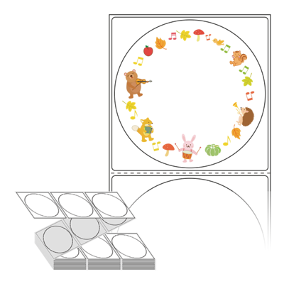 롤라벨보다 편리한 제트라벨, 규격코드: ZL8787, 디자인코드: DA128(숲속 친구들의 가을 연주회), Φ87 (mm) 원형