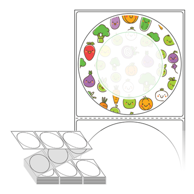 롤라벨보다 편리한 제트라벨, 규격코드: ZL8787, 디자인코드: DA1377(건강한 야채 이야기), Φ87 (mm) 원형