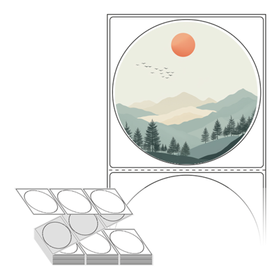 텍스트, 이미지, 도형, 바코드 등을 쉽게 출력 할 수 있으며 엑셀파일 등의 연동도 가능합니다. 라벨 모양대로 이미 칼선이 있기 때문에 출력 후 바로 떼어서 사용 하시면 됩니다.