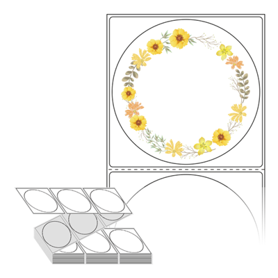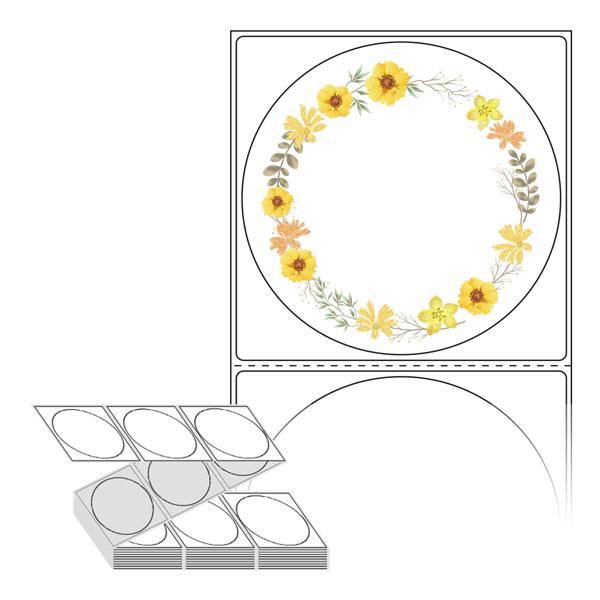 롤라벨보다 편리한 제트라벨, 규격코드: ZL8787, 디자인코드: DA347(노란꽃 화환 프레임), Φ87 (mm) 원형
