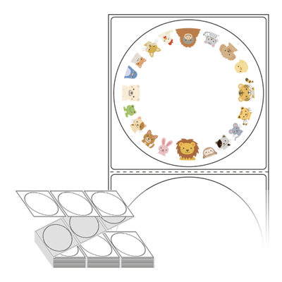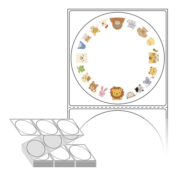 롤라벨보다 편리한 제트라벨, 규격코드: ZL8787, 디자인코드: DA410(헬로~귀여운 친구들), Φ87 (mm) 원형