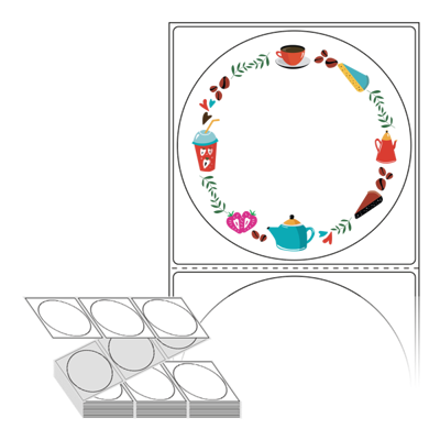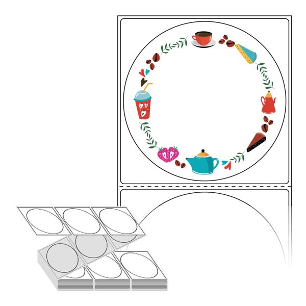 롤라벨보다 편리한 제트라벨, 규격코드: ZL8787, 디자인코드: DA416(커피와 디저트), Φ87 (mm) 원형
