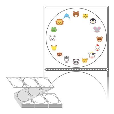 텍스트, 이미지, 도형, 바코드 등을 쉽게 출력 할 수 있으며 엑셀파일 등의 연동도 가능합니다. 라벨 모양대로 이미 칼선이 있기 때문에 출력 후 바로 떼어서 사용 하시면 됩니다.