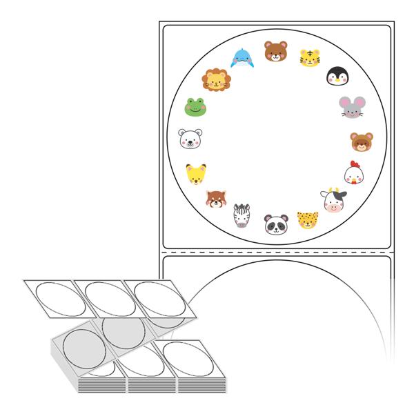 롤라벨보다 편리한 제트라벨, 규격코드: ZL8787, 디자인코드: DA807(귀여운 동물 얼굴 프레임), Φ87 (mm) 원형