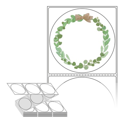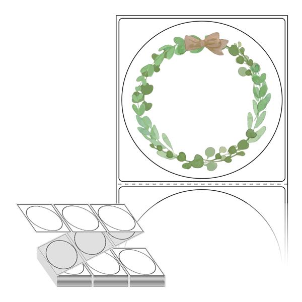 롤라벨보다 편리한 제트라벨, 규격코드: ZL8787, 디자인코드: DA818(수채화로 그린 풀잎 프레임), Φ87 (mm) 원형