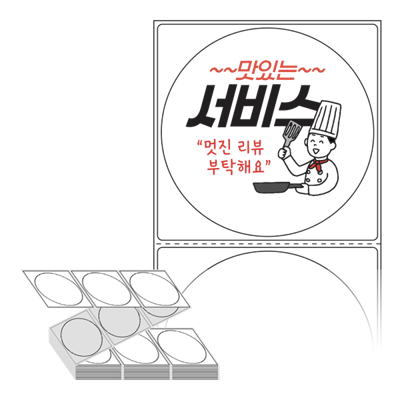 롤라벨보다 편리한 제트라벨, 규격코드: ZL8787, 디자인코드: FA030(맛있는 서비스 멋진 리뷰 부탁해요), Φ87 (mm) 원형