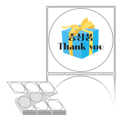 텍스트, 이미지, 도형, 바코드 등을 쉽게 출력 할 수 있으며 엑셀파일 등의 연동도 가능합니다. 라벨 모양대로 이미 칼선이 있기 때문에 출력 후 바로 떼어서 사용 하시면 됩니다.