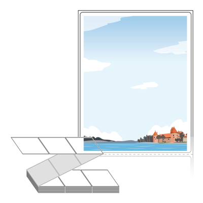 텍스트, 이미지, 도형, 바코드 등을 쉽게 출력 할 수 있으며 엑셀파일 등의 연동도 가능합니다. 라벨 모양대로 이미 칼선이 있기 때문에 출력 후 바로 떼어서 사용 하시면 됩니다.