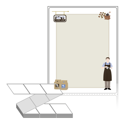 텍스트, 이미지, 도형, 바코드 등을 쉽게 출력 할 수 있으며 엑셀파일 등의 연동도 가능합니다. 라벨 모양대로 이미 칼선이 있기 때문에 출력 후 바로 떼어서 사용 하시면 됩니다.