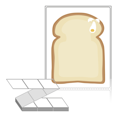텍스트, 이미지, 도형, 바코드 등을 쉽게 출력 할 수 있으며 엑셀파일 등의 연동도 가능합니다. 라벨 모양대로 이미 칼선이 있기 때문에 출력 후 바로 떼어서 사용 하시면 됩니다.