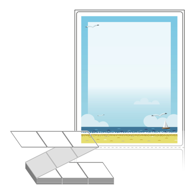텍스트, 이미지, 도형, 바코드 등을 쉽게 출력 할 수 있으며 엑셀파일 등의 연동도 가능합니다. 라벨 모양대로 이미 칼선이 있기 때문에 출력 후 바로 떼어서 사용 하시면 됩니다.