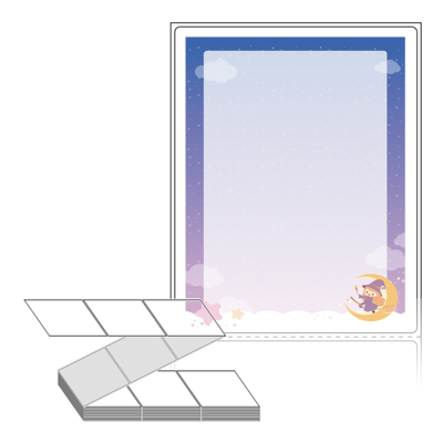 텍스트, 이미지, 도형, 바코드 등을 쉽게 출력 할 수 있으며 엑셀파일 등의 연동도 가능합니다. 라벨 모양대로 이미 칼선이 있기 때문에 출력 후 바로 떼어서 사용 하시면 됩니다.