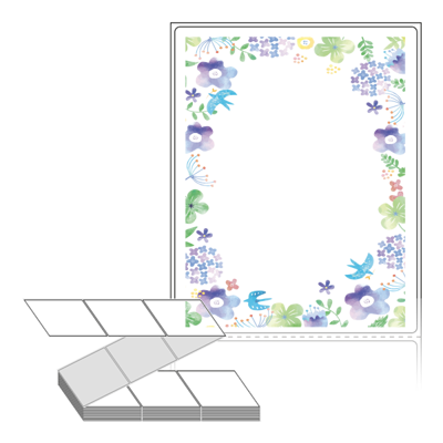 롤라벨보다 편리한 제트라벨, 규격코드: ZL90116, 디자인코드: DA820(새와 꽃들의 이야기), 90 x 115.533 (mm)