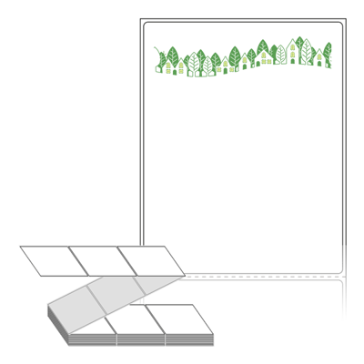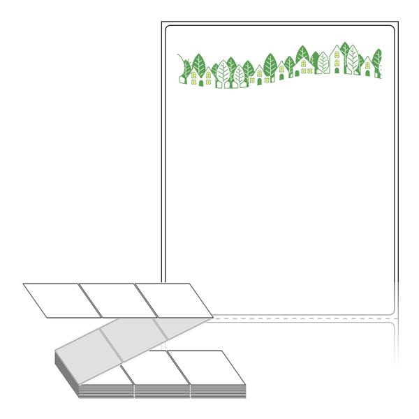 롤라벨보다 편리한 제트라벨, 규격코드: ZL90116, 디자인코드: DN059(가로수 사이 녹색 하우스), 90 x 115.533 (mm)