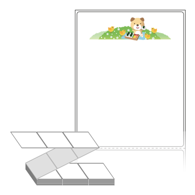롤라벨보다 편리한 제트라벨, 규격코드: ZL90116, 디자인코드: DN083(봄 소풍나온 곰과 병아리들), 90 x 115.533 (mm)
