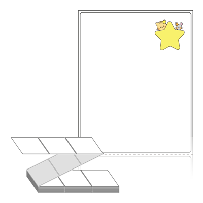 텍스트, 이미지, 도형, 바코드 등을 쉽게 출력 할 수 있으며 엑셀파일 등의 연동도 가능합니다. 라벨 모양대로 이미 칼선이 있기 때문에 출력 후 바로 떼어서 사용 하시면 됩니다.