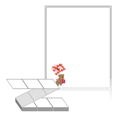 롤라벨보다 편리한 제트라벨, 규격코드: ZL90116, 디자인코드: DX017(러브메신저 곰돌이), 90 x 115.533 (mm)