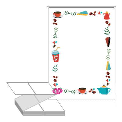 롤라벨보다 편리한 제트라벨, 규격코드: ZL90124, 디자인코드: DA101(커피와 디저트), 90 x 124 (mm)