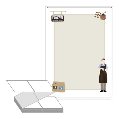 텍스트, 이미지, 도형, 바코드 등을 쉽게 출력 할 수 있으며 엑셀파일 등의 연동도 가능합니다. 라벨 모양대로 이미 칼선이 있기 때문에 출력 후 바로 떼어서 사용 하시면 됩니다.