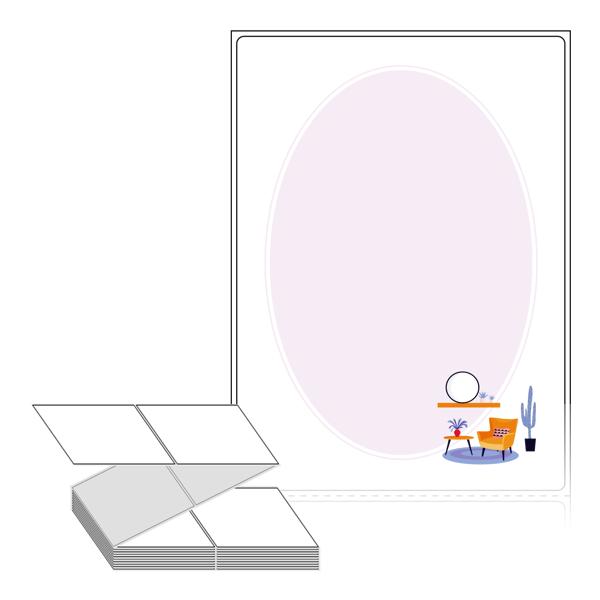 텍스트, 이미지, 도형, 바코드 등을 쉽게 출력 할 수 있으며 엑셀파일 등의 연동도 가능합니다. 라벨 모양대로 이미 칼선이 있기 때문에 출력 후 바로 떼어서 사용 하시면 됩니다.