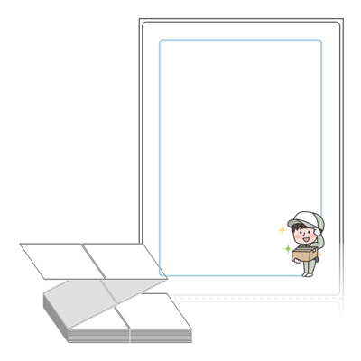 텍스트, 이미지, 도형, 바코드 등을 쉽게 출력 할 수 있으며 엑셀파일 등의 연동도 가능합니다. 라벨 모양대로 이미 칼선이 있기 때문에 출력 후 바로 떼어서 사용 하시면 됩니다.