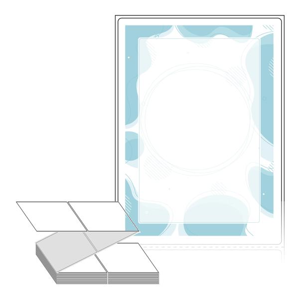 텍스트, 이미지, 도형, 바코드 등을 쉽게 출력 할 수 있으며 엑셀파일 등의 연동도 가능합니다. 라벨 모양대로 이미 칼선이 있기 때문에 출력 후 바로 떼어서 사용 하시면 됩니다.