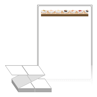 롤라벨보다 편리한 제트라벨, 규격코드: ZL90124, 디자인코드: DN057(회전초밥 프레임), 90 x 124 (mm)