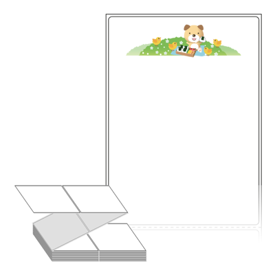 롤라벨보다 편리한 제트라벨, 규격코드: ZL90124, 디자인코드: DN083(봄 소풍나온 곰과 병아리들), 90 x 124 (mm)
