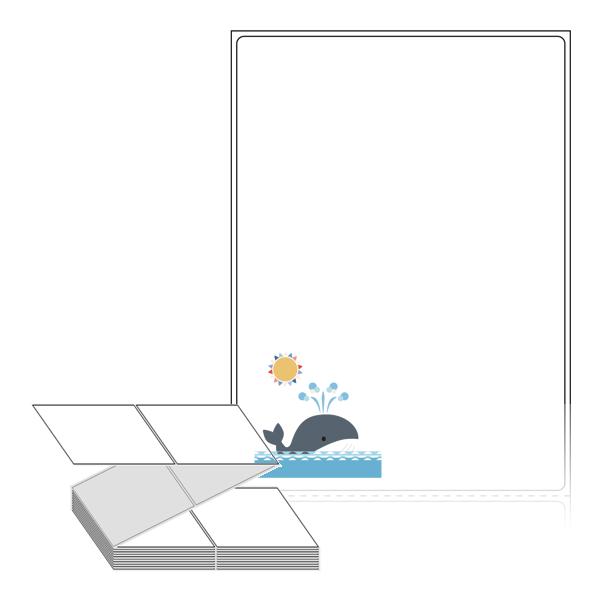 롤라벨보다 편리한 제트라벨, 규격코드: ZL90124, 디자인코드: DX172(고래의 하루), 90 x 124 (mm)
