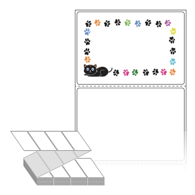 텍스트, 이미지, 도형, 바코드 등을 쉽게 출력 할 수 있으며 엑셀파일 등의 연동도 가능합니다. 라벨 모양대로 이미 칼선이 있기 때문에 출력 후 바로 떼어서 사용 하시면 됩니다.