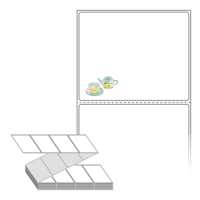텍스트, 이미지, 도형, 바코드 등을 쉽게 출력 할 수 있으며 엑셀파일 등의 연동도 가능합니다. 라벨 모양대로 이미 칼선이 있기 때문에 출력 후 바로 떼어서 사용 하시면 됩니다.