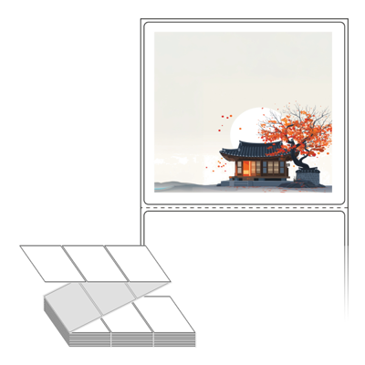 롤라벨보다 편리한 제트라벨, 규격코드: ZL9082, 디자인코드: DA1348(감나무가 있는 기와집2), 90 x 81.667 (mm)
