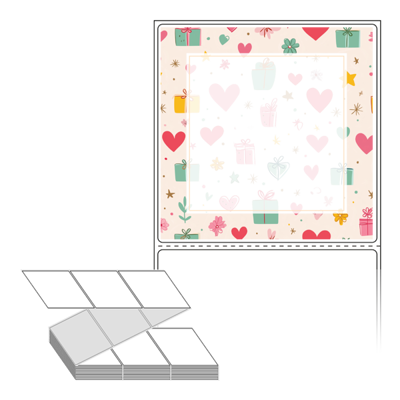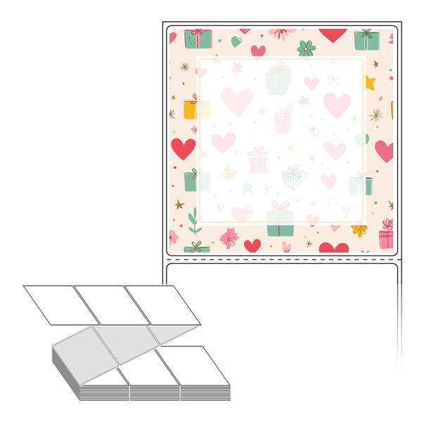 롤라벨보다 편리한 제트라벨, 규격코드: ZL9090, 디자인코드: DA1393(선물 하트 포장지), 90 x 90.133 (mm)
