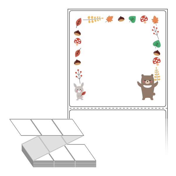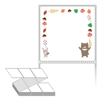 롤라벨보다 편리한 제트라벨, 규격코드: ZL9090, 디자인코드: DA388(숲속 친구들의 가을 잔치), 90 x 90.133 (mm)