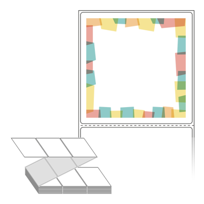텍스트, 이미지, 도형, 바코드 등을 쉽게 출력 할 수 있으며 엑셀파일 등의 연동도 가능합니다. 라벨 모양대로 이미 칼선이 있기 때문에 출력 후 바로 떼어서 사용 하시면 됩니다.