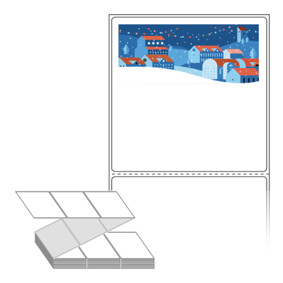 롤라벨보다 편리한 제트라벨, 규격코드: ZL9090, 디자인코드: DN002(눈 내리는 마을), 90 x 90.133 (mm)