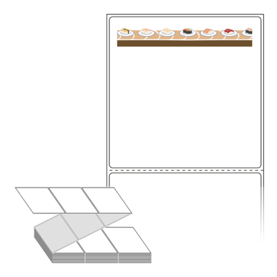 롤라벨보다 편리한 제트라벨, 규격코드: ZL9090, 디자인코드: DN057(회전초밥 프레임), 90 x 90.133 (mm)