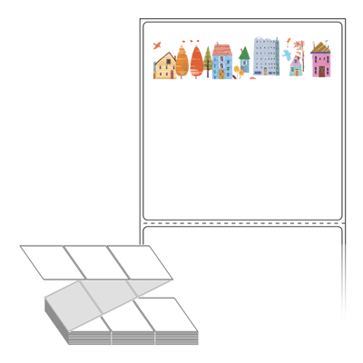 롤라벨보다 편리한 제트라벨, 규격코드: ZL9090, 디자인코드: DN096(동화속 거리), 90 x 90.133 (mm)